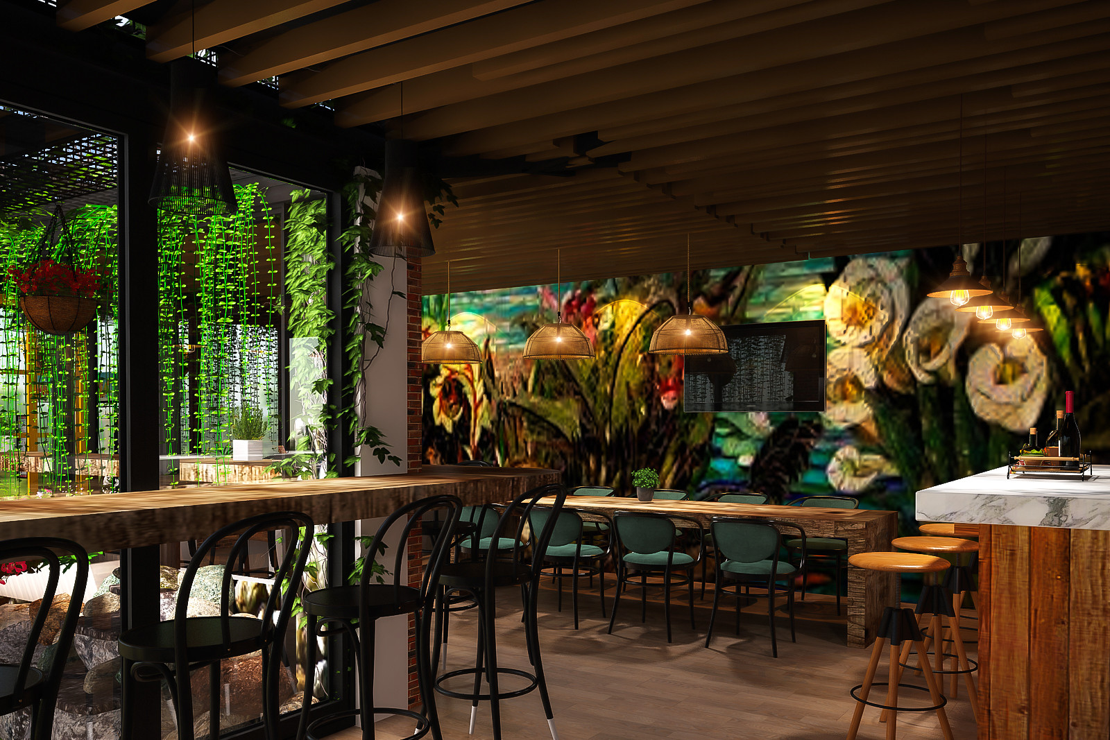 Mỗi chi tiết đều được chăm chút kỹ lưỡng – từ chiếc đèn tre thủ công, mảng tường viết tay đầy cảm hứng, đến những chậu cây xanh được đặt đúng nơi đúng chỗ – tất cả góp phần tạo nên một tổng thể vừa mộc mạc, vừa tinh tế.