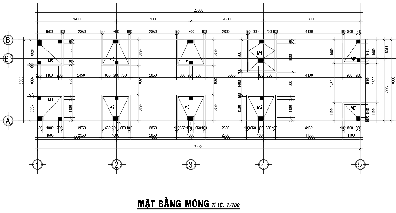 - Đài móng trên nền cọc khoan nhồi, cọc bê tông cốt thép ép neo tính 60% diện tích.