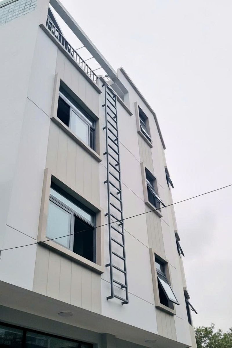 Điểm nhấn của dự án là thiết kế tối giản – hiện đại, sử dụng tông màu trung tính kết hợp cùng vật liệu bền vững, giúp không gian tổng thể trở nên sạch sẽ, sang trọng và dễ bảo trì. Ngoài ra, hệ thống thang kỹ thuật ngoài trời được lắp đặt chắc chắn, đảm bảo an toàn tuyệt đối cho công tác bảo trì và kiểm tra kỹ thuật trên mái – một yếu tố thể hiện rõ sự chuyên nghiệp trong thi công của SPNHome.