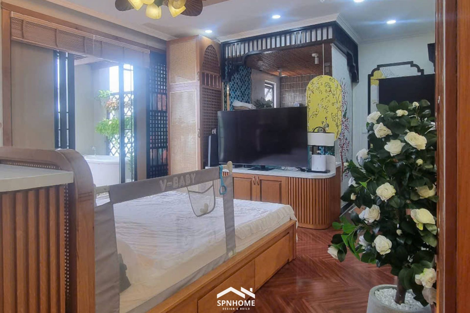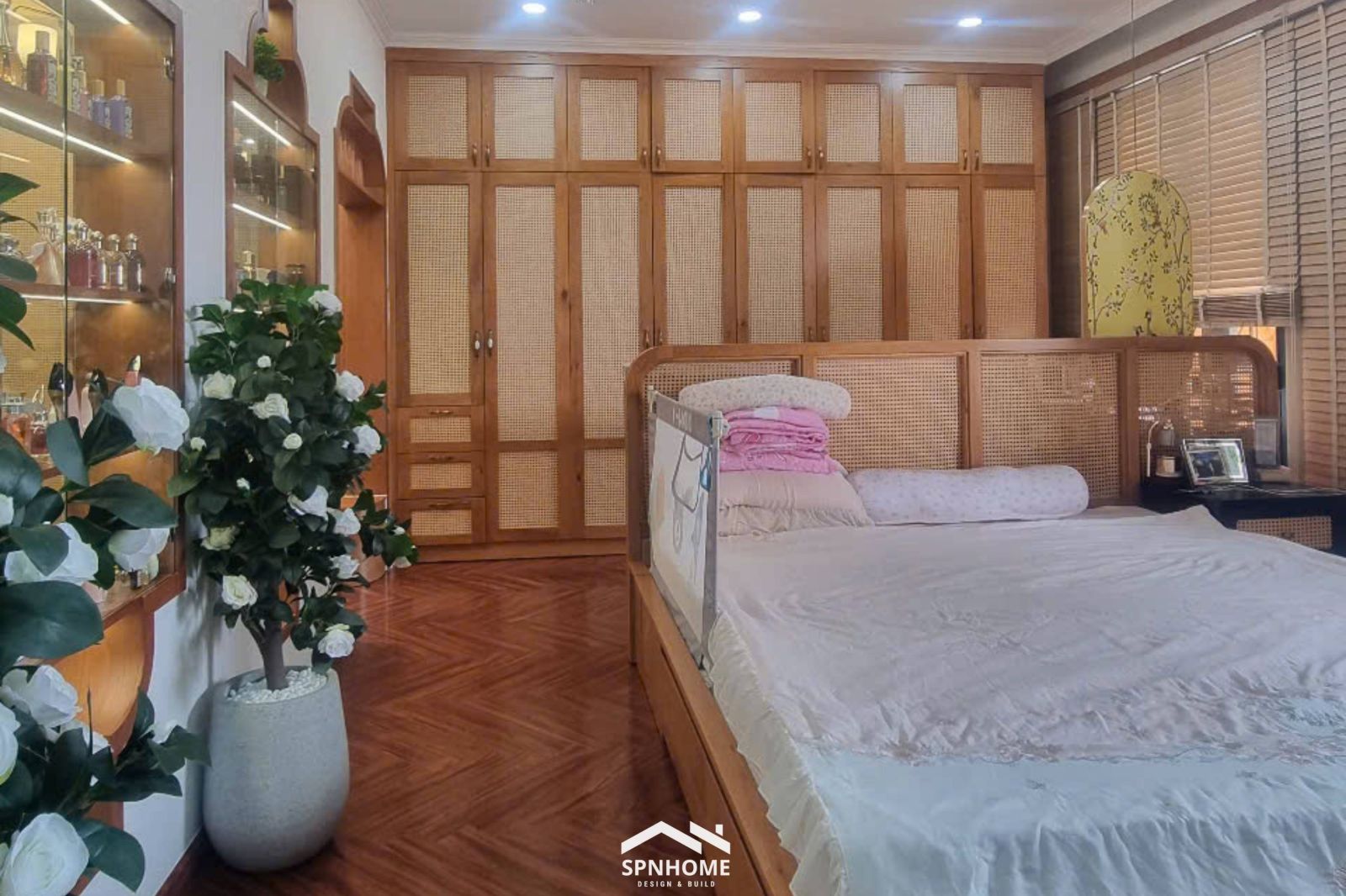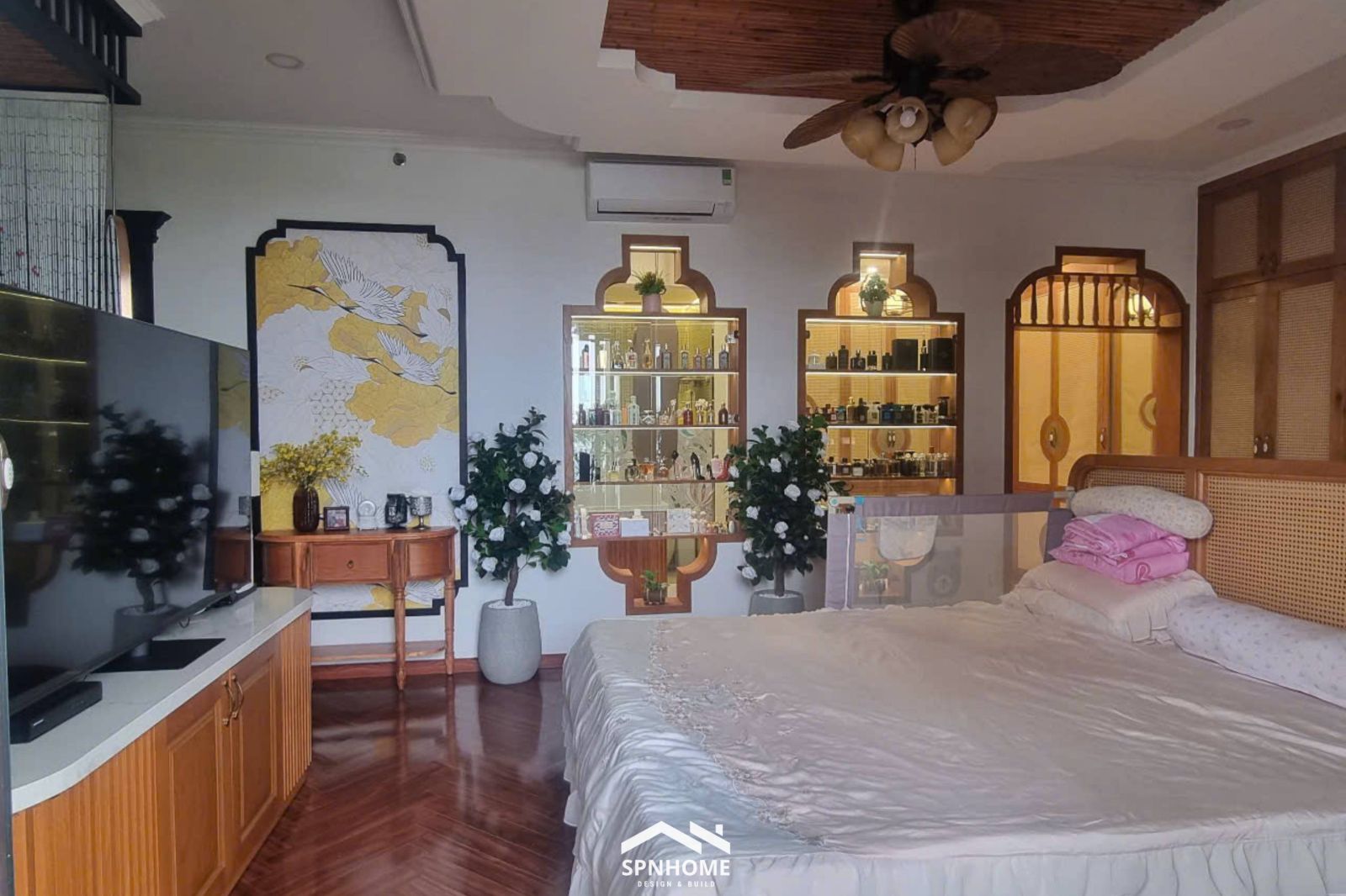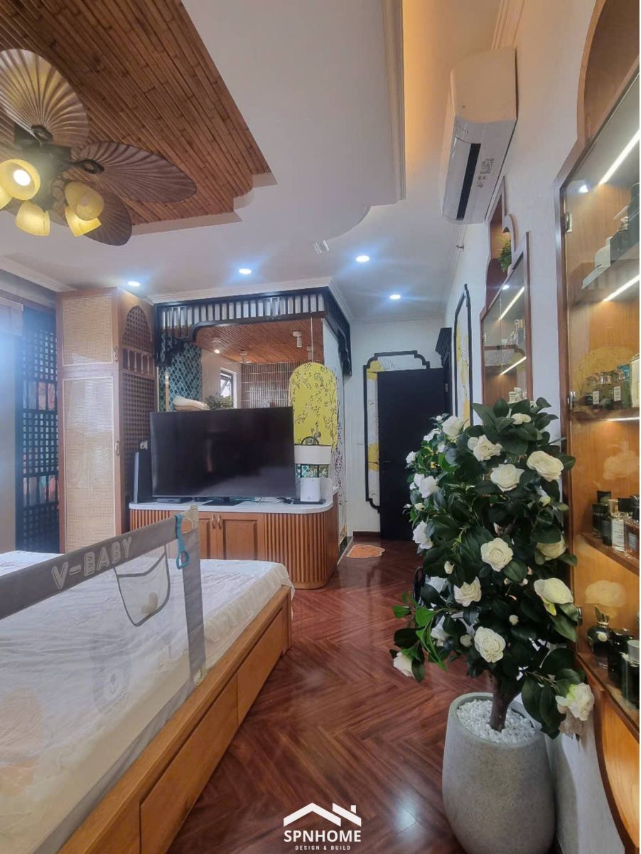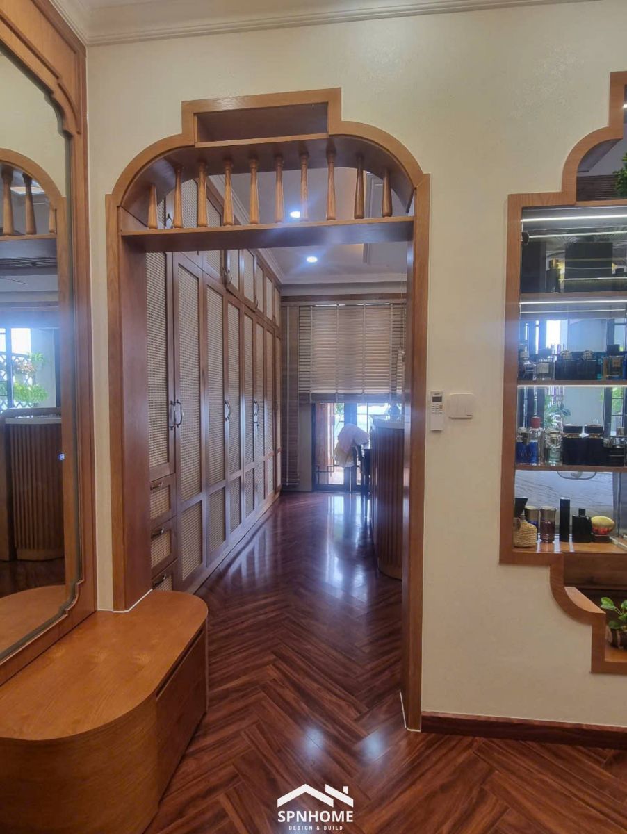 Hoàn thiện không gian phòng master căn Penthouse ST Motiz với thiết kế liên thông gồm phòng ngủ, phòng thay đồ và khu vực nhà vệ sinh khép kín, tạo nên một tổng thể thống nhất, tiện nghi và riêng tư. Nội thất được thi công đồng bộ, sử dụng chất liệu gỗ ấm áp kết hợp ánh sáng bố trí hài hòa, mang lại cảm giác thư giãn nhưng vẫn giữ được nét sang trọng, tinh tế. Mỗi khu vực đều được sắp xếp khoa học, tối ưu công năng sử dụng, đáp ứng trọn vẹn nhu cầu sinh hoạt của gia chủ trong một không gian sống chuẩn Penthouse cao cấp.