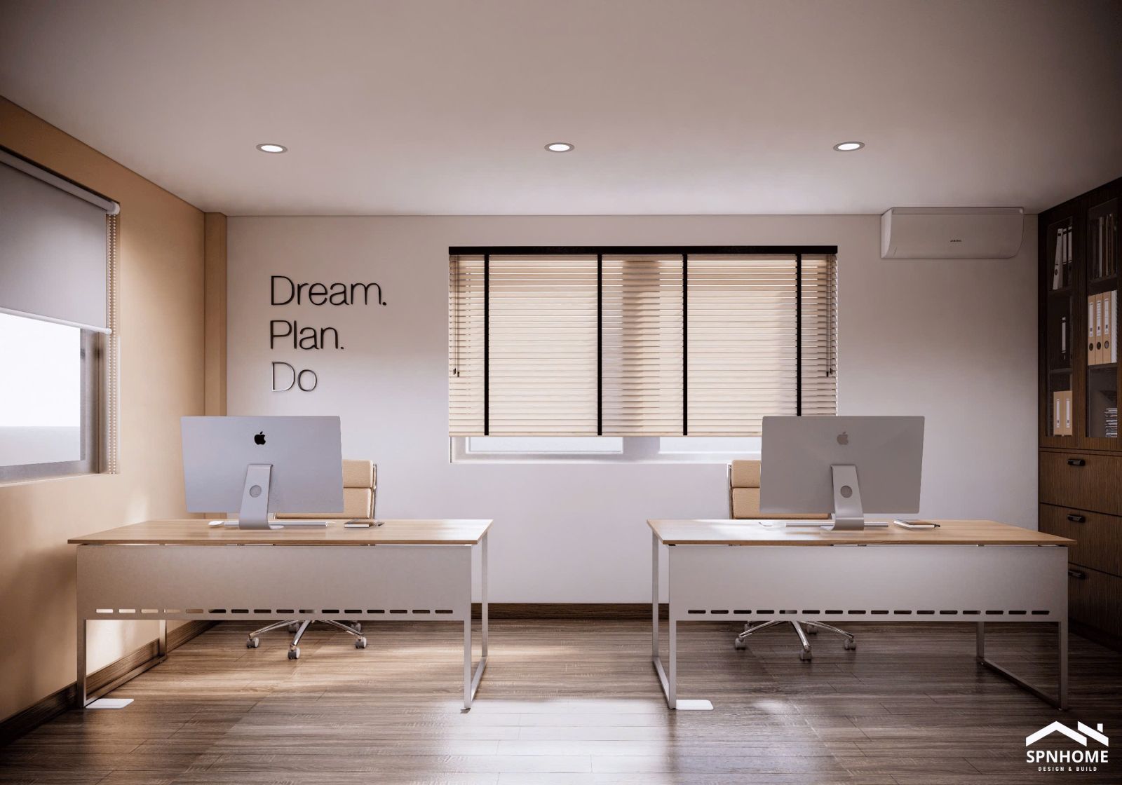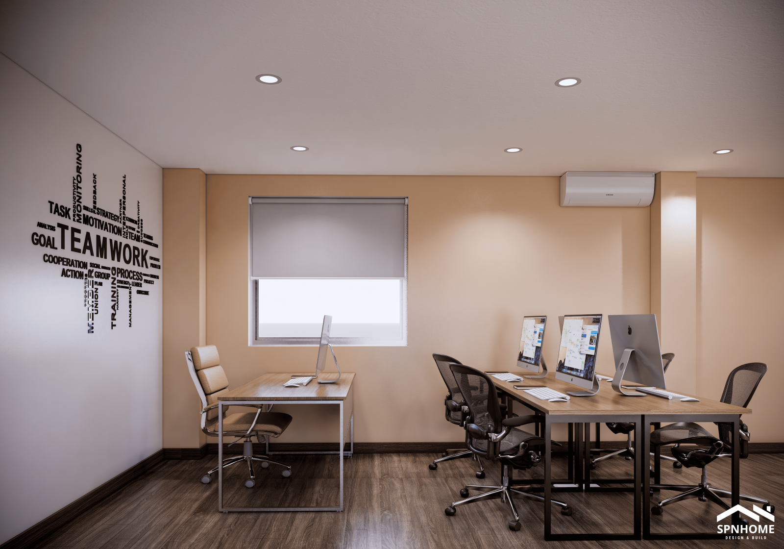 Phòng riêng dành cho lãnh đạo giữ sự riêng tư cần thiết nhưng không quá tách biệt. Thiết kế đơn giản, sang trọng với nội thất gỗ cùng chi tiết trang trí tinh tế, vừa thể hiện phong cách lãnh đạo, vừa tạo cảm giác gần gũi và truyền cảm hứng cho đội ngũ.