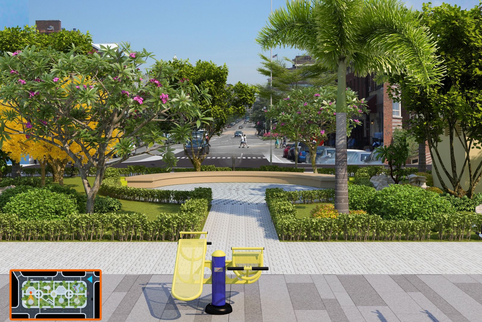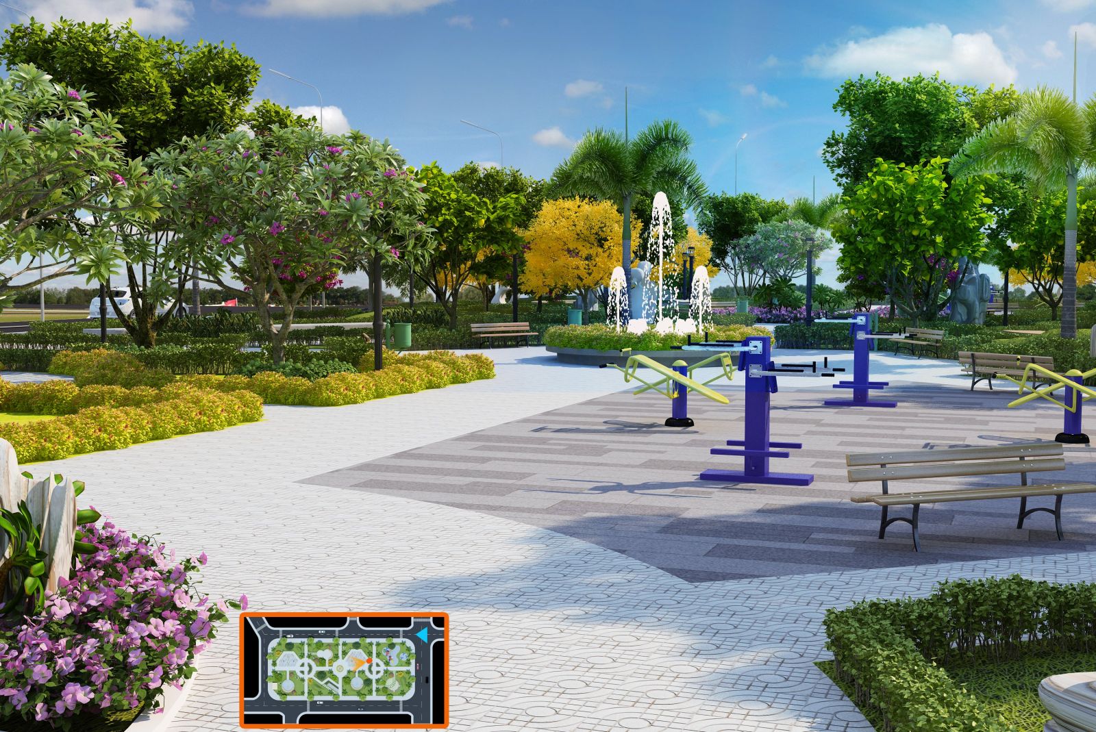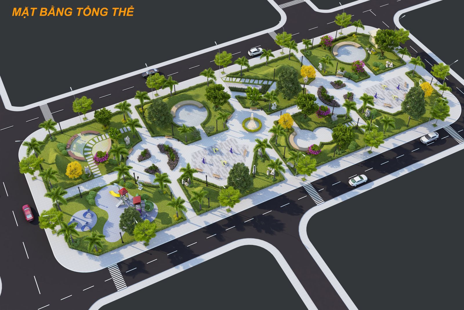 Trong tổng thể quy hoạch, công viên nội khu đóng vai trò như một lõi sinh thái – vừa là điểm nhấn cảnh quan, vừa là không gian cộng đồng cho cư dân. Diện tích công viên được bố trí liền kề các trục giao thông chính và cụm nhà ở, đảm bảo khả năng tiếp cận thuận tiện từ mọi hướng.