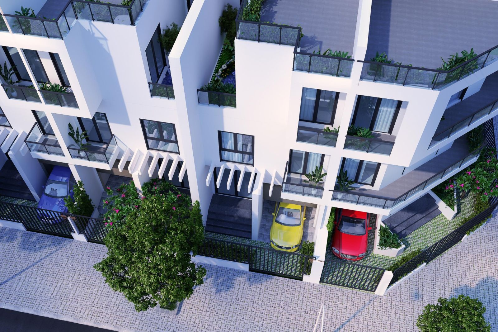 - Mỗi căn gồm 1 trệt, 2 lầu, sân thượng, mặt tiền thoáng, đường nét hiện đại, phù hợp cho nhu cầu ở, kết hợp kinh doanh hoặc cho thuê.