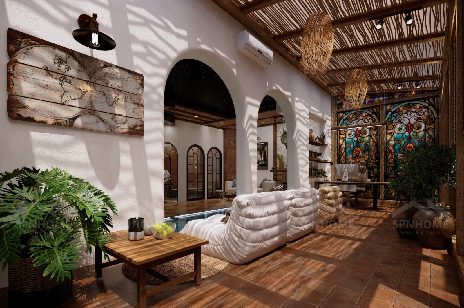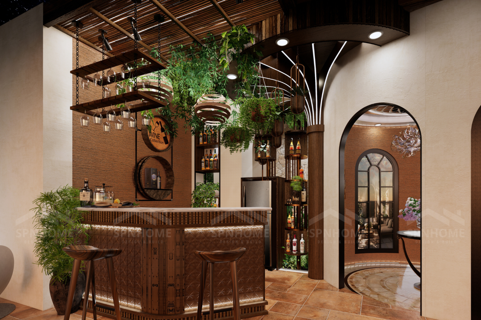 Không gian tiếp khách, làm việc và phòng ngủ của con – lại là một tuyên ngôn mạnh mẽ về sự tự do trong cách sống. Không có ranh giới rõ ràng giữa trong và ngoài: khu vực hồ bơi, khu lounge, bàn bar, thậm chí cả các bức vách – đều mang tính linh hoạt cao, có thể biến hoá tùy theo cảm xúc hoặc nhu cầu sử dụng. Ở đây, yếu tố "kịch tính" được đẩy cao hơn qua cách phối màu đậm, ánh sáng điểm và các chi tiết kim loại tạo độ tương phản với phần “gia đình” của gia chủ.
