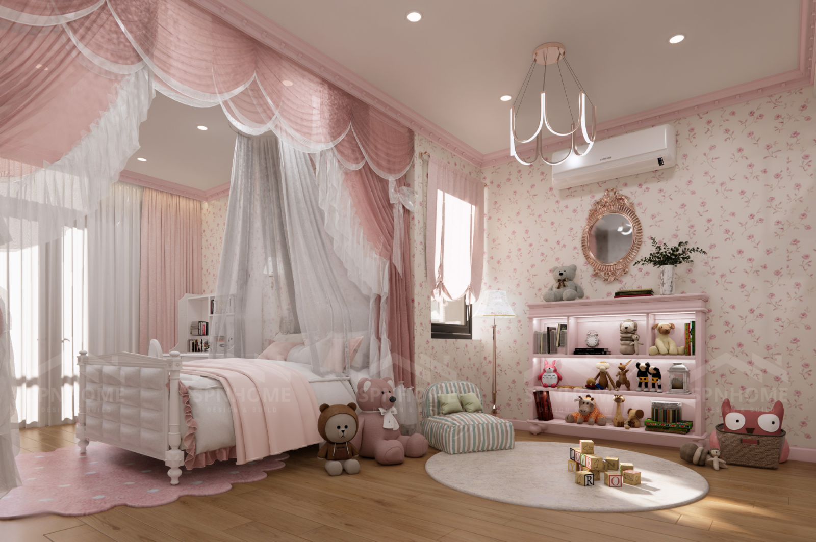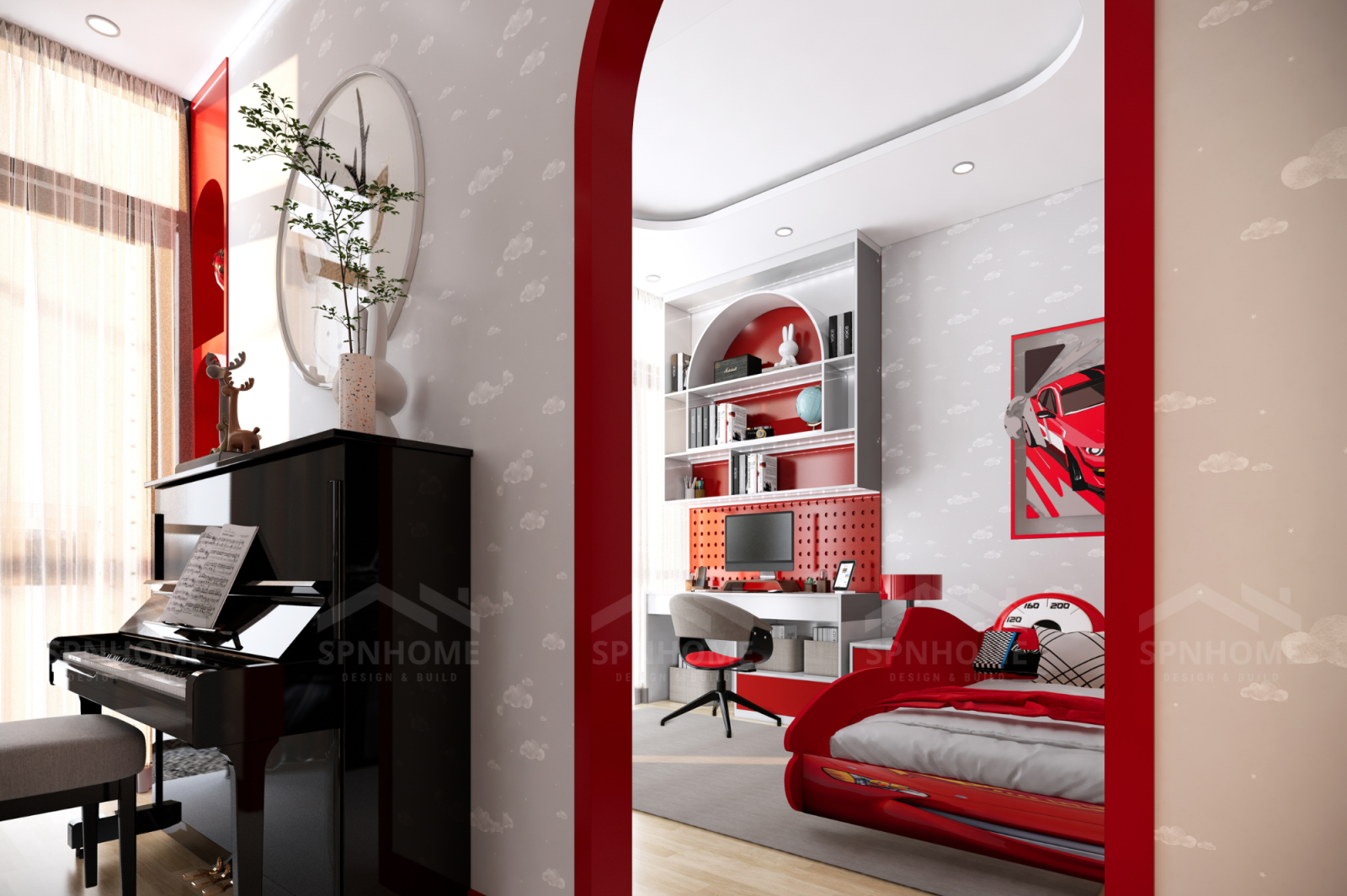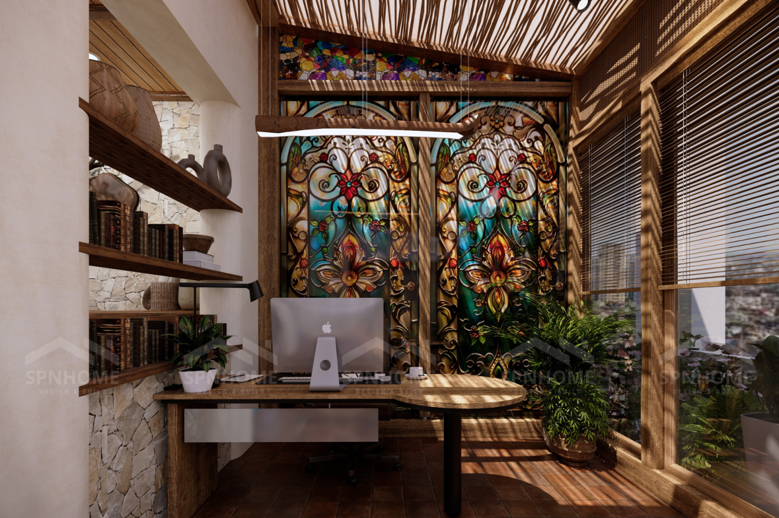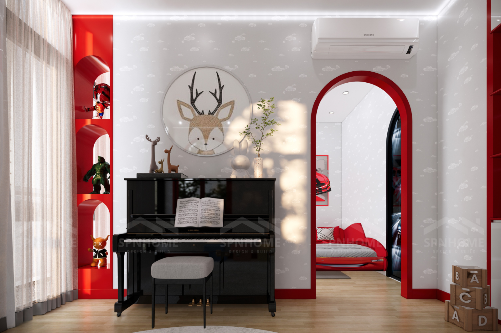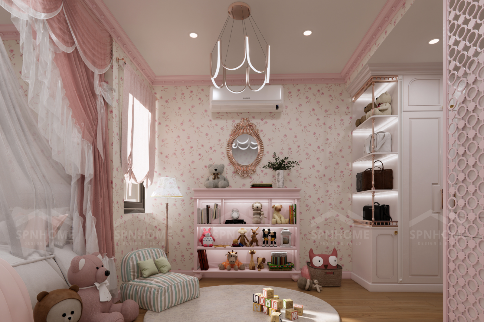 Đây là nơi cho các bé nhỏ lớn lên trong một không gian ấm cúng, nhẹ nhàng và ngập tràn ánh sáng tự nhiên. Khu làm việc được bố trí ngay sát cửa sổ lớn, tận dụng tối đa nguồn sáng trời – vừa giúp tăng năng suất, vừa mang đến cảm giác gần gũi với thiên nhiên giữa lòng thành phố.