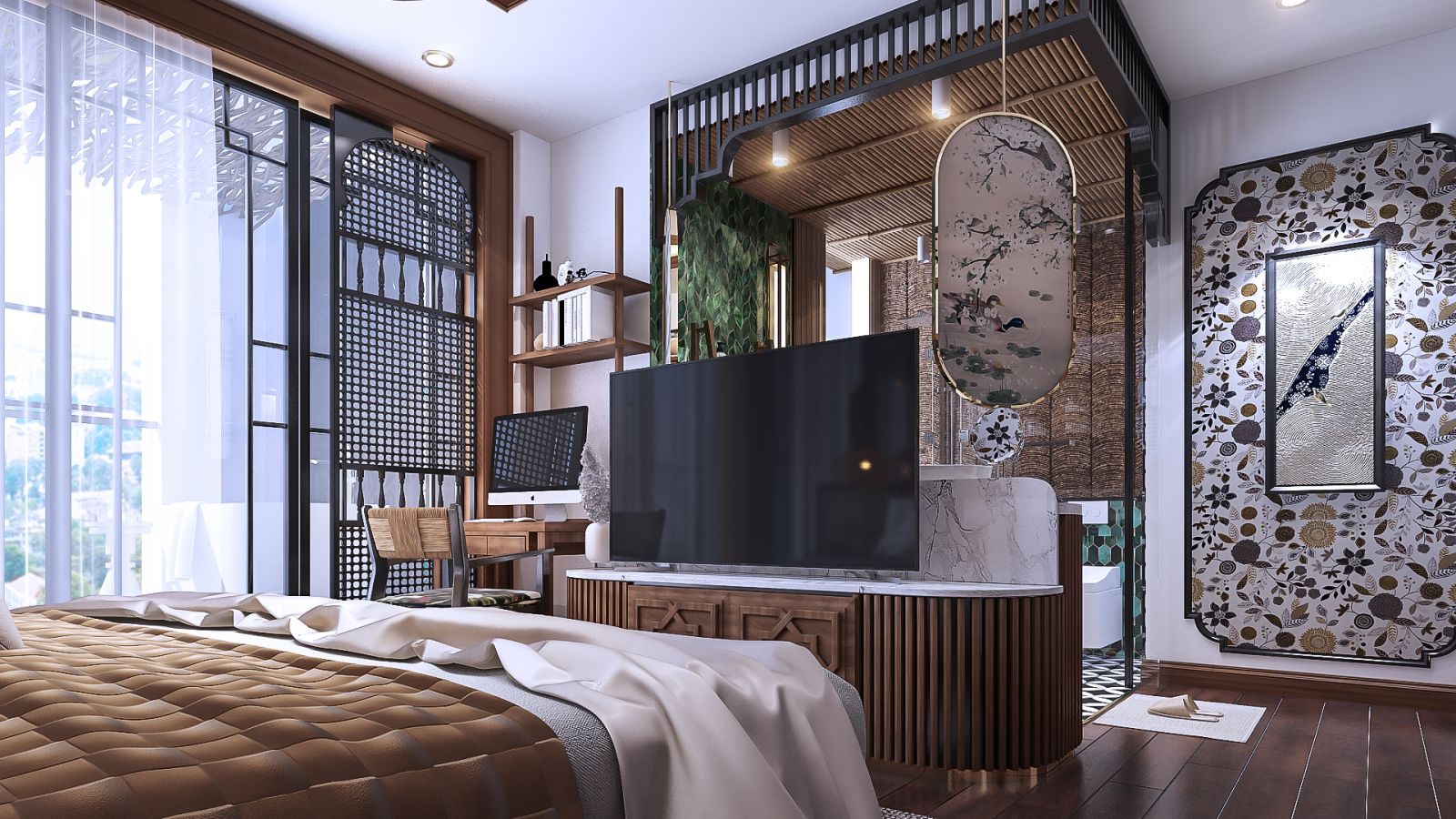 Không gian riêng như phòng ngủ, khu làm việc và phòng tắm được thiết kế với mức độ cá nhân hóa cao và đặc biệt là phải thể hiện được "cái chất" của đôi vợ chồng trẻ. Trong đó, phòng ngủ master là điểm nhấn đặc biệt – mang cảm hứng resort tại gia, với chất liệu vải, ánh sáng gián tiếp, hương gỗ và màu sắc dịu nhẹ.