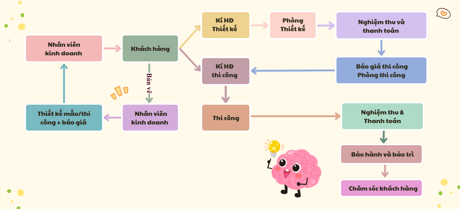 Hoàn thành hạng mục → nghiệm thu chất lượng cùng khách hàng.