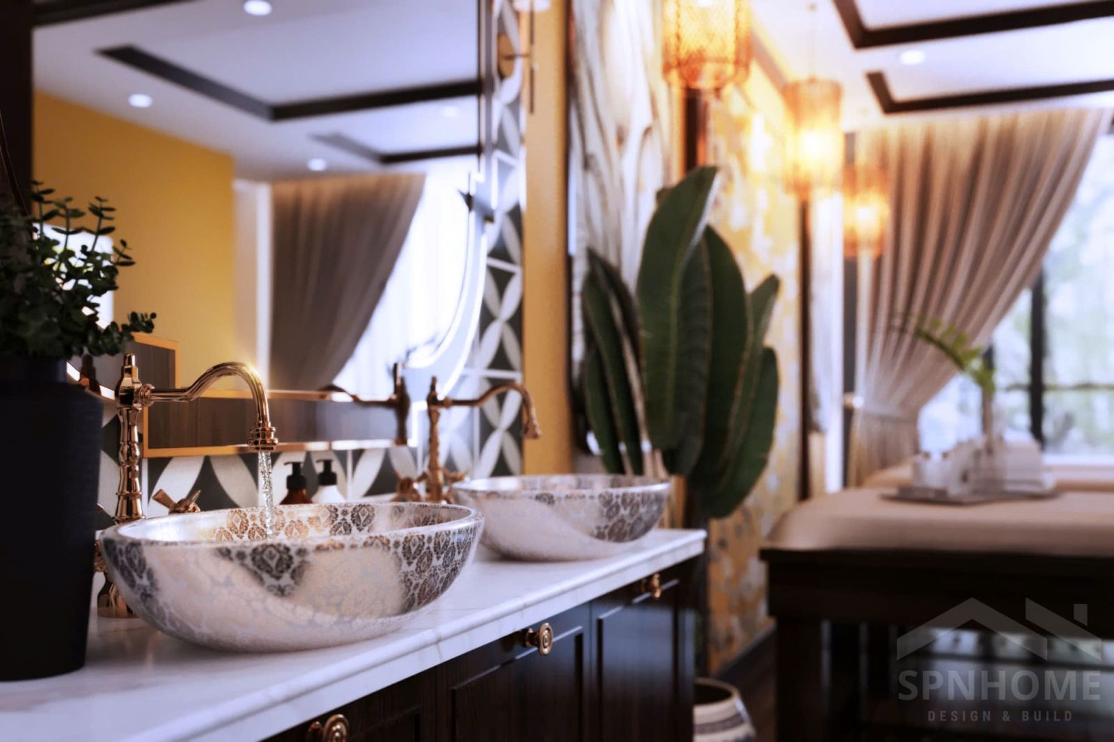 Không gian rửa mặt, thư giãn được bố trí tinh tế, chuẩn phong cách spa cao cấp
