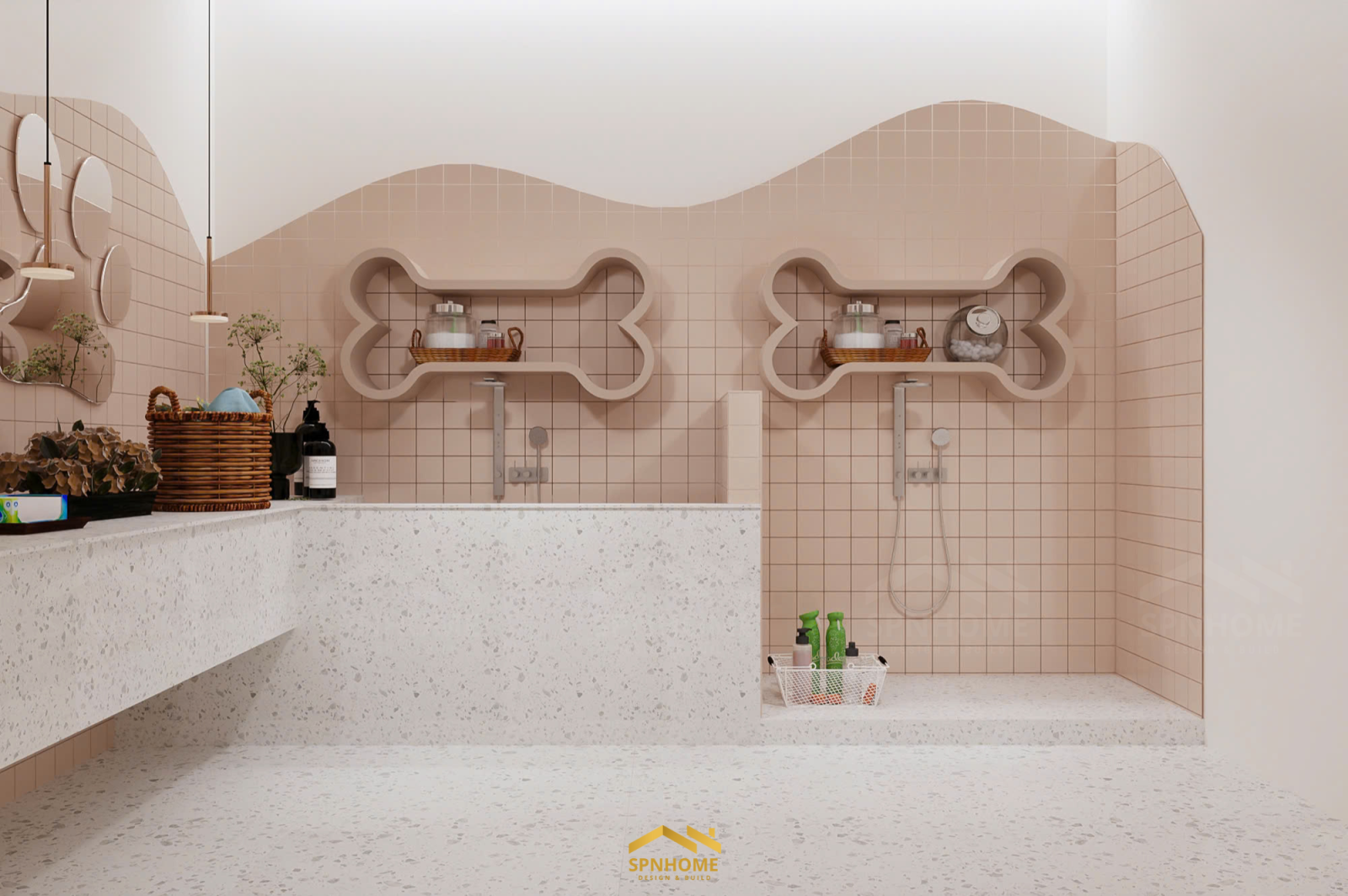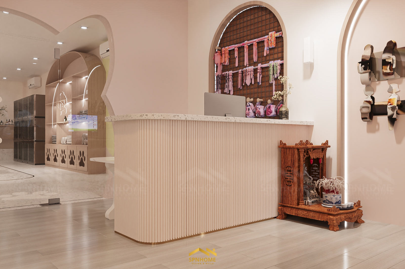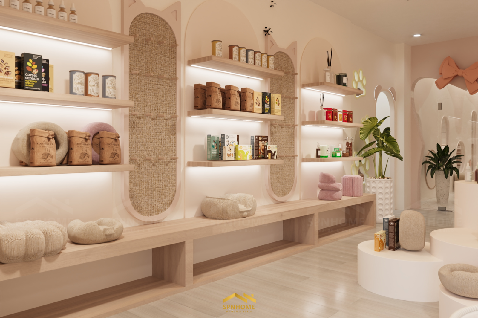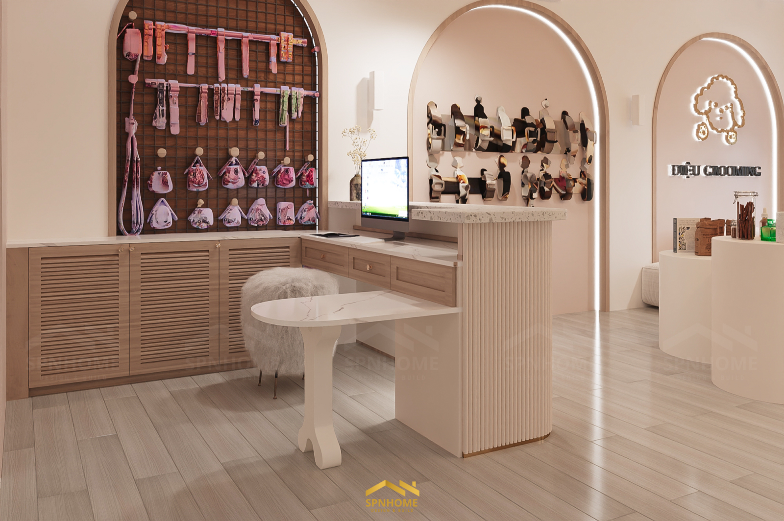 Công trình Petshop tích hợp ba chức năng chính: spa – cửa hàng – khách sạn thú cưng. Mỗi khu có vai trò riêng, nhưng không hoạt động tách biệt. Thiết kế của SPNhome cũng không nằm ở việc chia bao nhiêu diện tích cho mỗi chức năng, mà là làm thế nào để mọi thứ vận hành liên tục và tự nhiên nhất có thể.