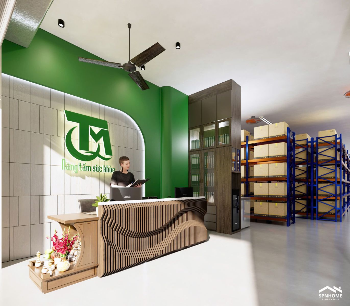 Ngay khi bước vào trụ sở Công ty TNHH TMDV Tâm Minh tại Kênh 19.5, bạn sẽ bắt gặp khu vực lễ tân hiện đại với thiết kế mang màu sắc thương hiệu. Quầy tiếp đón được tạo hình tinh tế, vừa thể hiện sự chuyên nghiệp vừa mang đến cảm giác thân thiện cho khách hàng và đối tác.