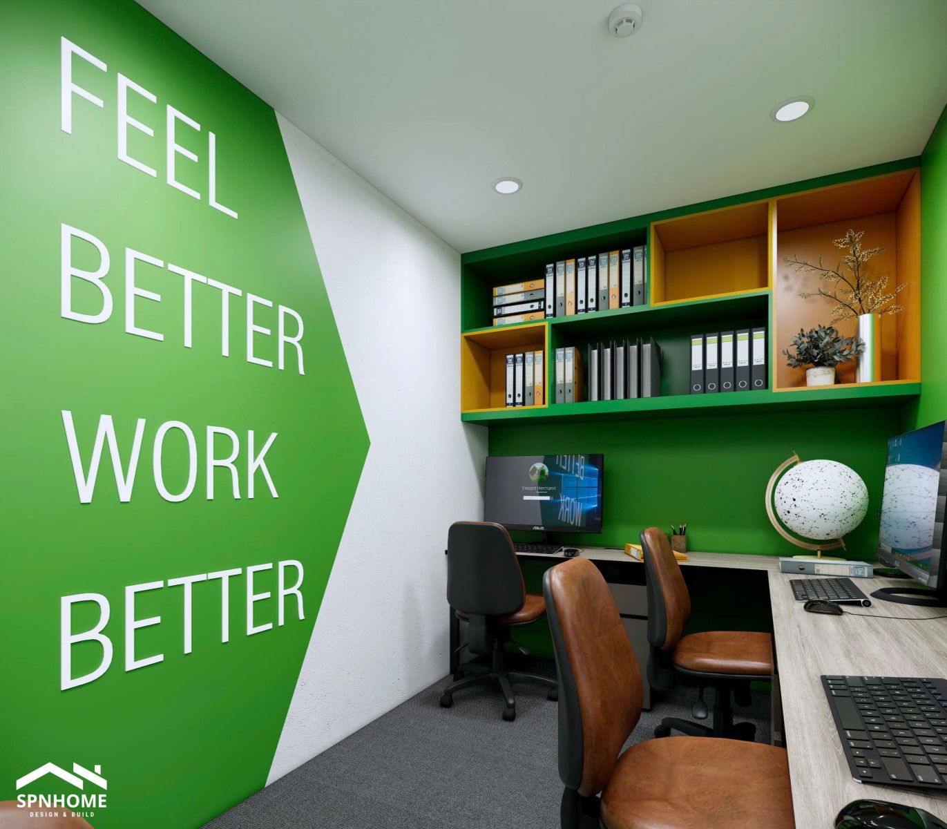 Phòng Marketing – Sale Online & Kinh doanh: Thiết kế trẻ trung, sắc màu tươi sáng cùng những slogan truyền cảm hứng trên tường. Đây là “trái tim sáng tạo” nơi đội ngũ liên tục phát triển ý tưởng, xây dựng chiến dịch và kết nối khách hàng.