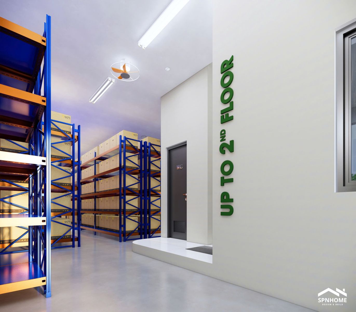 Khu vực thủ kho & kho chứa hàng: Thiết kế rộng rãi, trang bị kệ tiêu chuẩn, sắp xếp hợp lý giúp quản lý hàng hóa an toàn và thuận tiện.