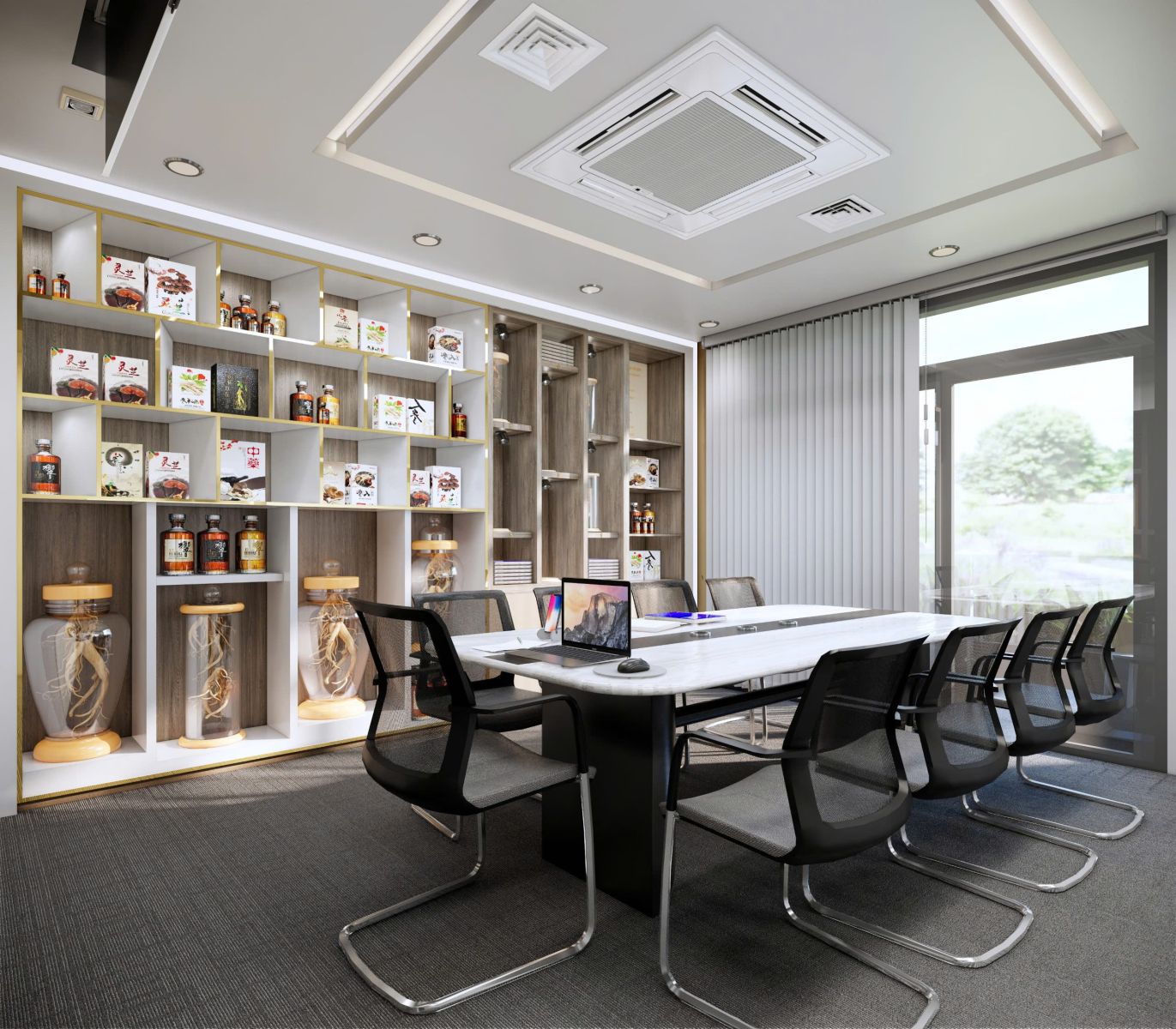 Phòng họp & trưng bày sản phẩm: Một không gian đa năng – vừa để bàn bạc chiến lược, vừa là showroom mini trưng bày những sản phẩm chủ lực, khẳng định giá trị và uy tín của doanh nghiệp.